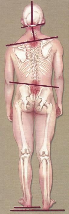 Ist zb. eine seitliche Krümmung der Wirbelsäule eine sogenannte Skoliose ( siehe Bild oben ) vorhanden, wird das anhand von einem Beckenschiefstand, einem Schulter Schiefstand und letztendlich an einem kürzeren Bein deutlich sichtbar. Die in einer Fehlstellung liegenden Wirbel belasten in der Folge die Bandscheiben ungleichmäßig und im schlechtesten Fall entsteht dabei auch ein Druck auf einen Nerv.